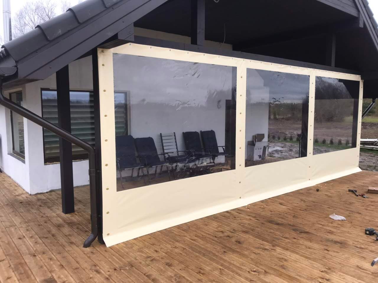 - Pavėsinės gaminamos iš metalo arba aliuminio profilio, PVC stogo ir sienų, galimybė derinti su stiklo, ar medžio konstrukcijomis, kurios būtų kaip sienelės.