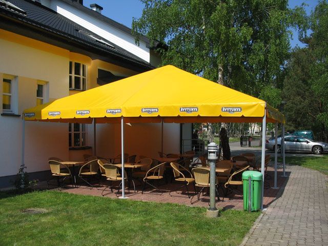 - Tentinės palapinės, pavėsinės, paviljonai yra itin populiarūs tarp viešo maitinimo įstaigų, kadangi gaminiai lengvai sumontuojami, bei esant poreikiui lengvai išmontuojami.